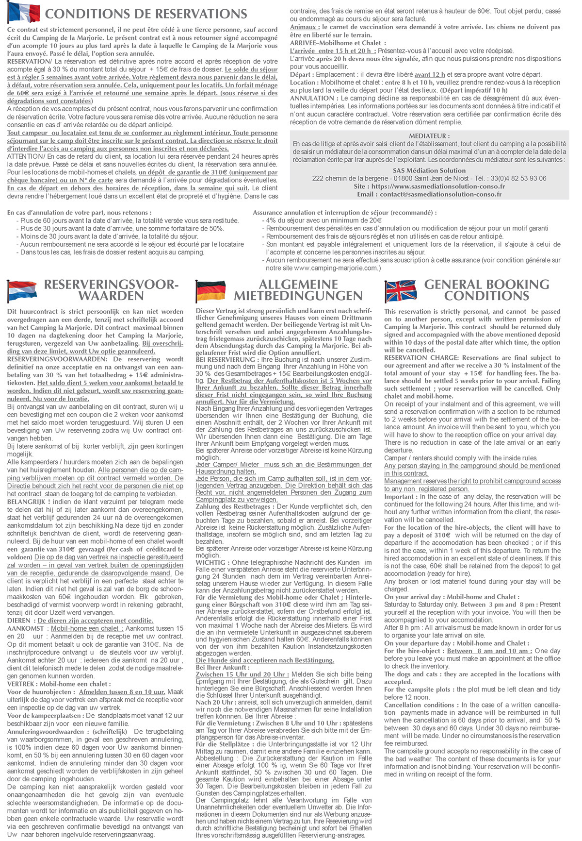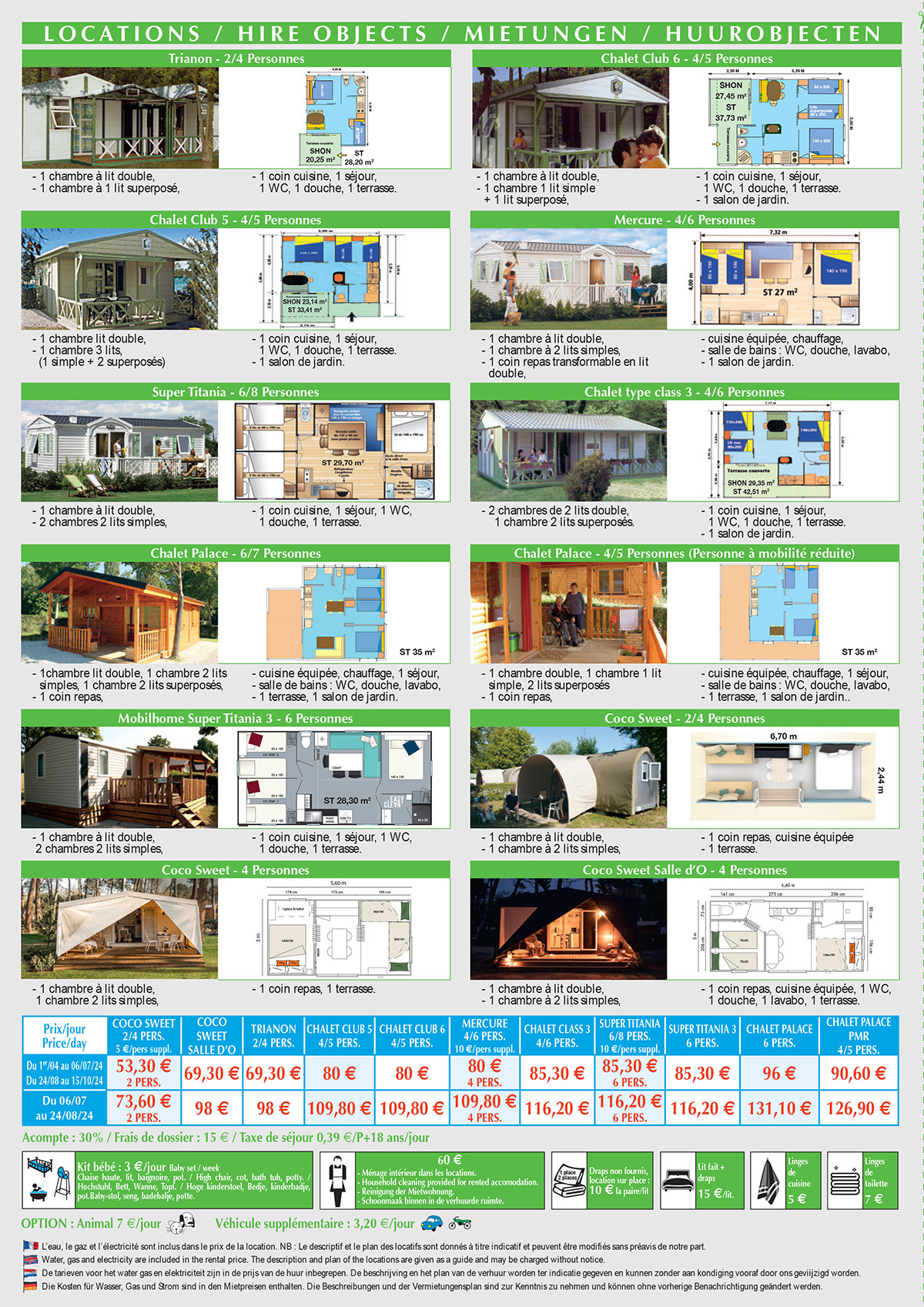 Klik op de link om de prijs van de kampeerplaatsen en vakantieverblijven, het huurcontract en de boekingsvoorwaarden te downloade